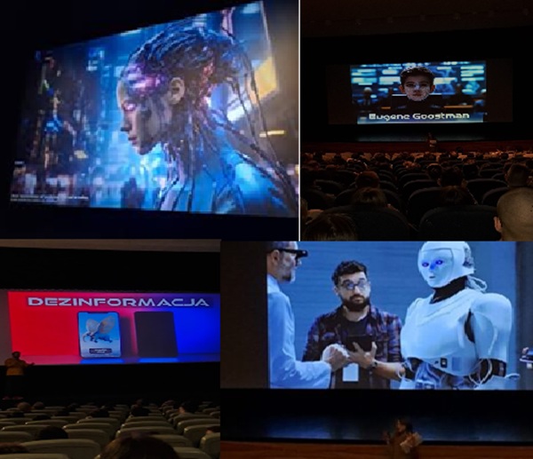 W ramach zajęć zaprezentowano również przykłady działania SI – m.in. rozpoznawanie twarzy, generowanie tekstu i mowy oraz wykorzystanie w najnowszych urządzeniach użyteczności publicznej. Lekcja w kinie miała charakter interaktywny – uczniowie mogli zadawać pytania, brać udział w quizach. Spotkanie zakończyła dyskusja na temat etycznych aspektów wykorzystania sztucznej inteligencji i jej wpływu na przyszłość. Udział w lekcji był dla uczniów cennym doświadczeniem, które poszerzyło ich wiedzę oraz pobudziło ciekawość w zakresie nowych technologii.