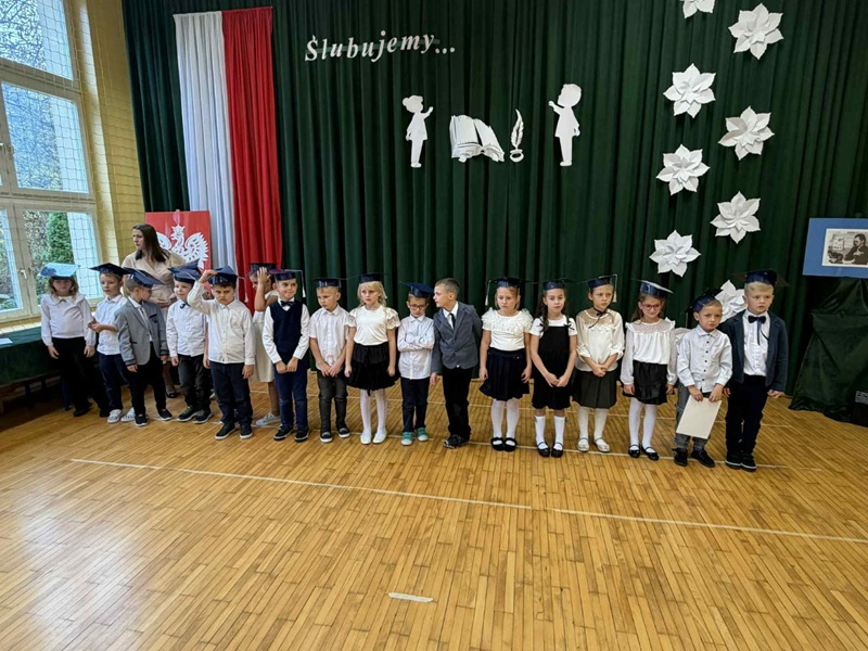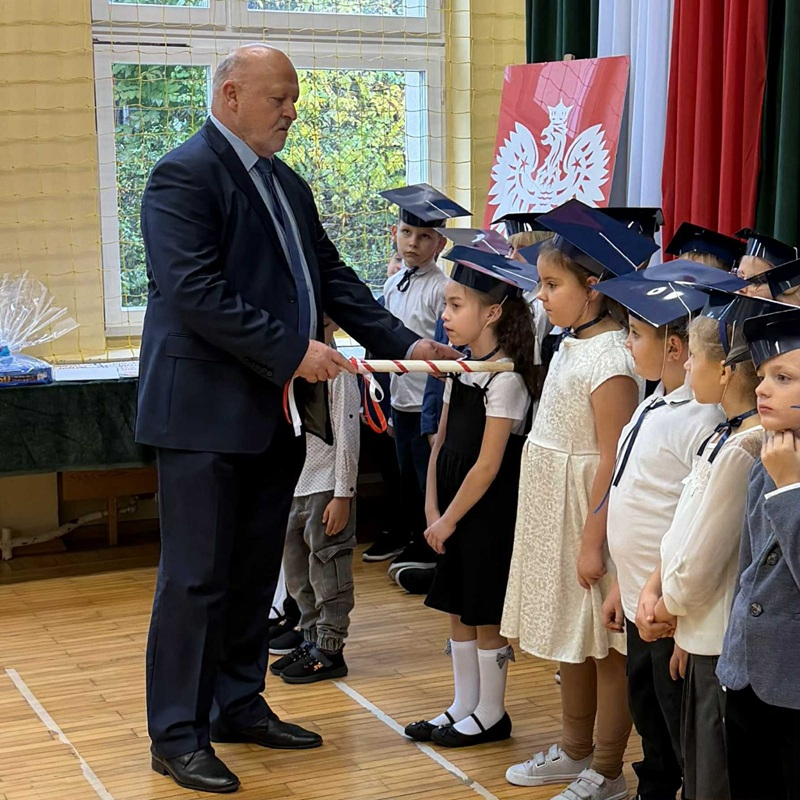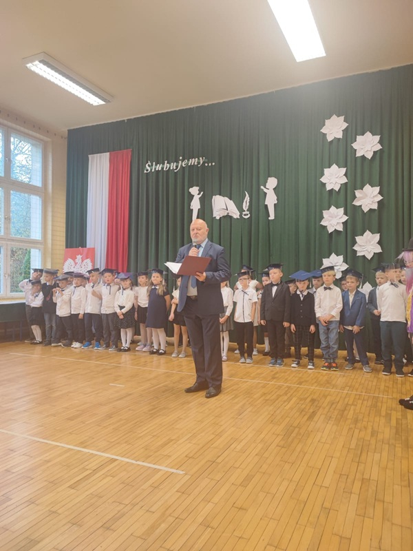 W piątek, 10 października 2025 roku, nasza szkoła przeżywała wyjątkowy dzień – uroczystość ślubowania uczniów klas pierwszych połączoną z odsłonięciem tablicy pamiątkowej poświęconej wieloletniemu dyrektorowi, śp. Władysławowi Czapli. Z powodu tej wyjątkowej okazji zaszczycili nas swoją obecnością zaproszeni goście: Pani Anna Papaj - naczelnik Wydziału Oświaty i Infrastruktury Społecznej, Ksiądz Proboszcz Parafii św. Brata Alberta dr Andrzej Jankoski, nauczyciele emeryci naszej szkoły, rodzice uczniów.