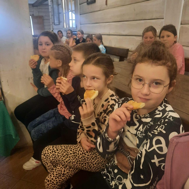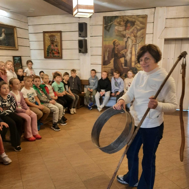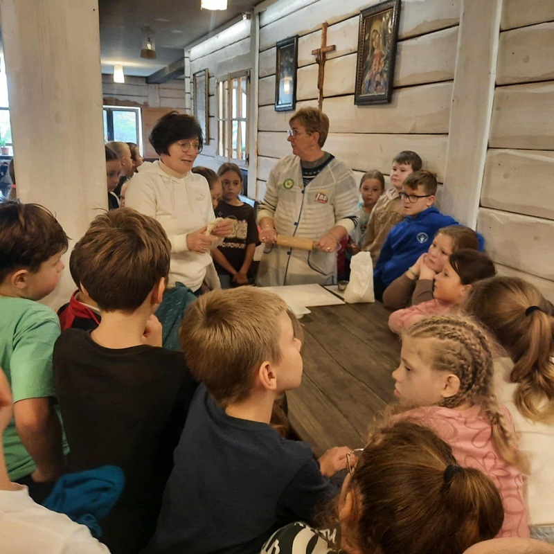 Dzieci poznały etapy powstawania chleba, od zasiania zboża, aż do momentu wyjęcia z pieca chlebowego upieczonego bochenka. Sam wygląd Izby Chleba przeniósł nas w czasy naszych „dziadków i pradziadków”. Każdy mógł skosztować świeżutkich, chrupiących i pachnących podpłomyków, które wypiekały się w specjalnym piecu chlebowym.