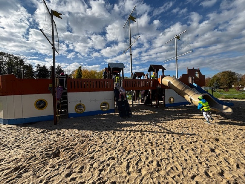 Spacer był nie tylko doskonałą okazją do nauki poprzez bezpośrednią obserwację przyrody, ale także do wspólnej zabawy. Po części edukacyjnej dzieci spędziły radosne chwile na placu zabaw w parku, integrując się i ciesząc piękną pogodą.