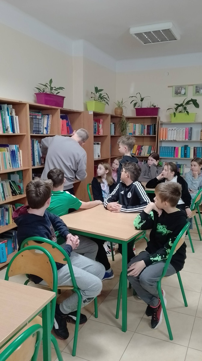 W ramach MMBS zaprosiliśmy uczniów do włączenia się w akcje, quizy i konkursy czytelnicze organizowane w szkolnej bibliotece. Zachęcaliśmy wszystkich do odwiedzenia oraz korzystania ze zbiorów bibliotecznych. 21 października odbyły sie w naszej szkole warsztaty czytelnicze, które poprowadził pan Artur Osiński- bibliotekarz z MGBP w Busku-Zdroju. Klasa IV a uczestniczyła w warsztatach pod hasłem „Dlaczego czytanie jest ważne?”. Uczniowie rozmawiali o tym, jak książki pomagają przenosić się w zupełnie inne miejsca, poznawać ciekawych bohaterów i zdobywać wiedzę, której nie ma w podręcznikach. Pan Artur pokazał im, że czytanie to prawdziwa przygoda, która rozwija słownictwo, uczy myślenia i buduje pewność siebie. Natomiast klasa VI b uczestniczyła w warsztatach „O książce i katalogach bibliotecznych”. Zaś w czwartek uczniowie z naszej szkoły uczestniczyli w warsztatach prowadzonych przez panią Ewę Tarapatę z biblioteki pedagogicznej w Busku-Zdroju. Klasa VII a poznała warsztat pracy pisarza powieści kryminalnych, a III b tajniki pracy detektywa na przykładzie lektury –Detektyw pozytywka. Uczniowie z klasy V a przenieśli się 1000 lat wstecz i uczestniczyli w koronacji Bolesława Chrobrego na pierwszego króla Polski. Podczas spotkania uczniowie mieli okazję wcielić się w role historycznych postaci takich jak Bolesław Chrobry, Mieszko I, Dobrawa, Otton III, biskup Wojciech i biskup Hipolit.