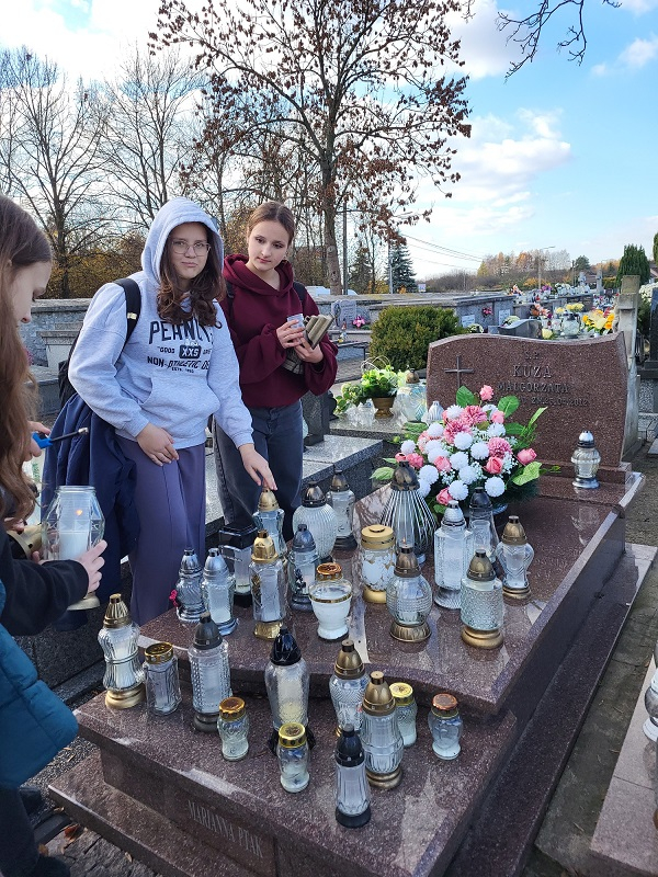 Listopad to miesiąc zadumy, refleksji i wspomnień. To czas, gdy wspominamy tych, którzy odeszli, a płomień zniczy rozświetla mrok jesiennych dni, niosąc w sobie ciepło pamięci. Tradycją uczniów naszej szkoły jest odwiedzenie buskiej nekropoli zawsze w pierwszym tygodniu listopada, tak było i w tym roku . We wtorek 4 listopada 2025 roku, uczniowie klasy 7b wraz opiekunami szkolnego wolontariatu udali się na Cmentarz Parafialny w Busku, młodzież z zaangażowaniem porządkowała groby żołnierzy, zasłużonych mieszkańców regionu oraz nieżyjących nauczycieli swojej szkoły.