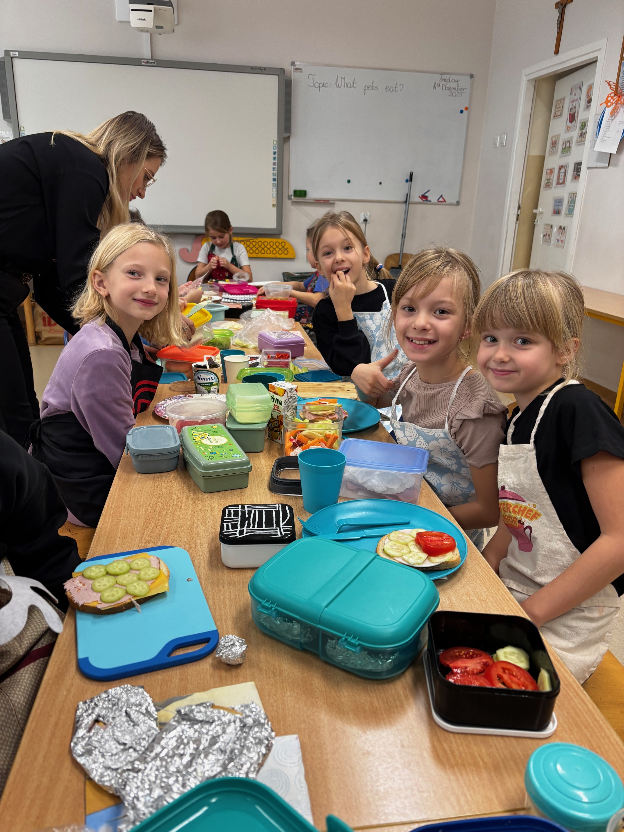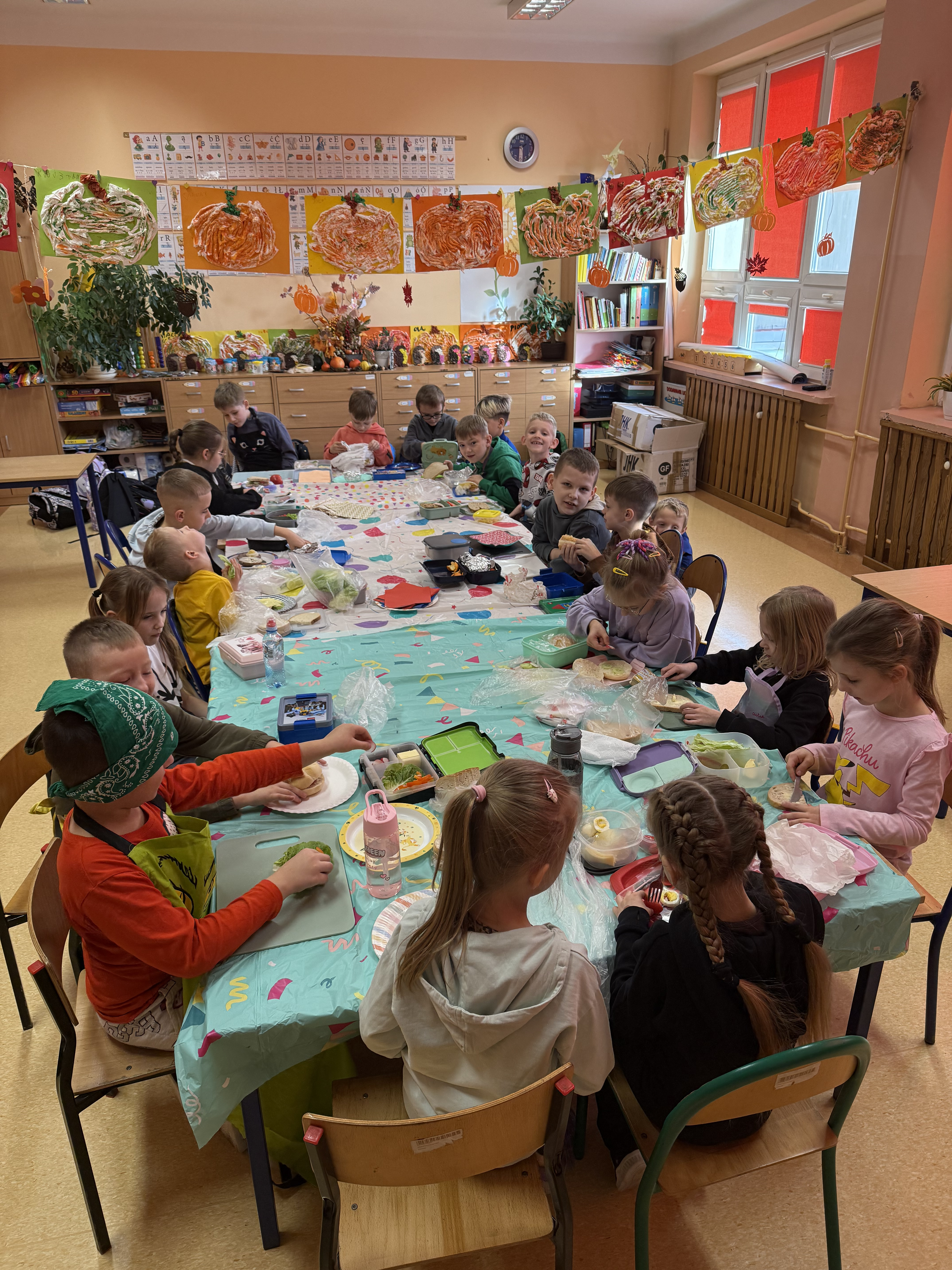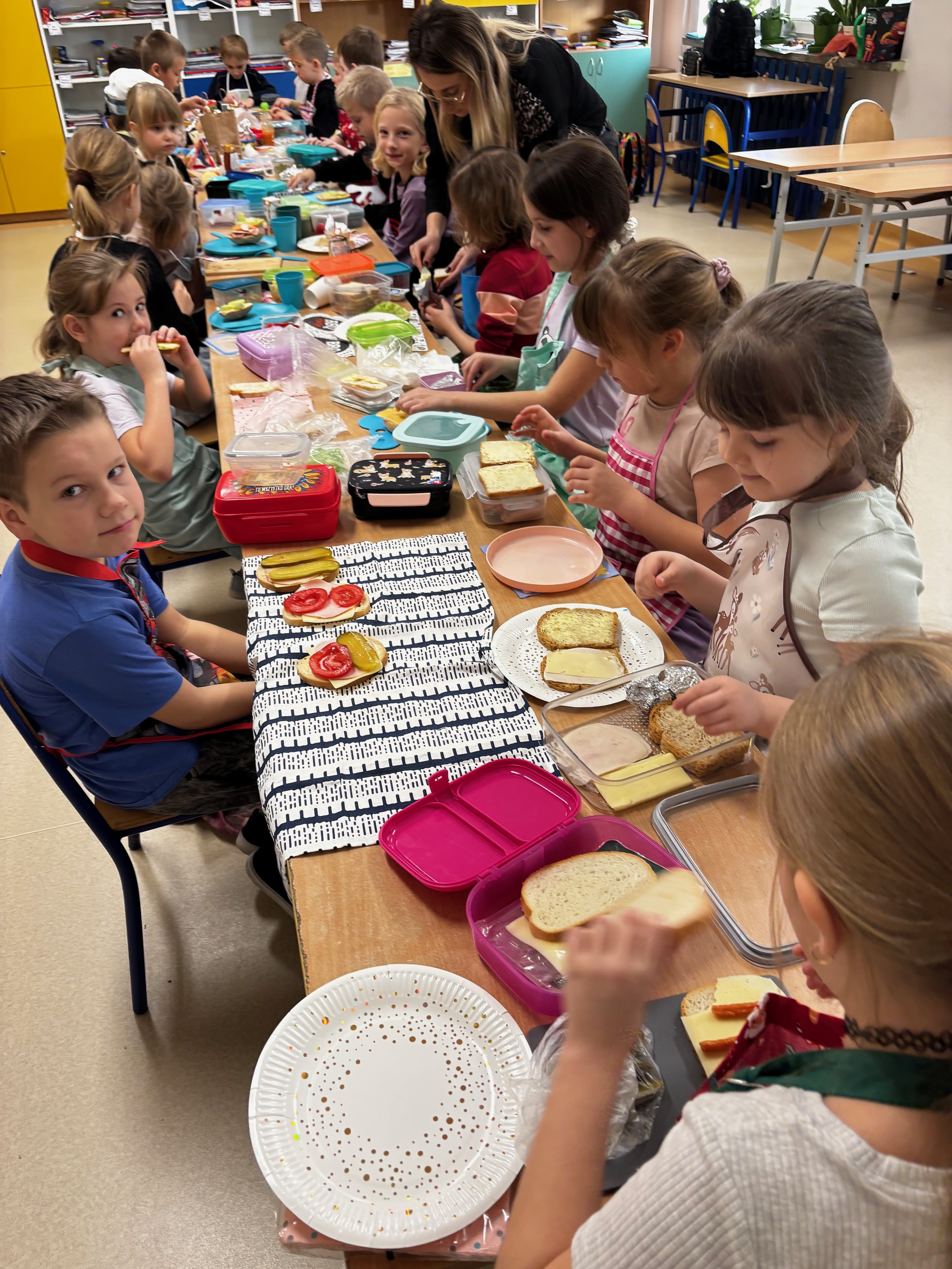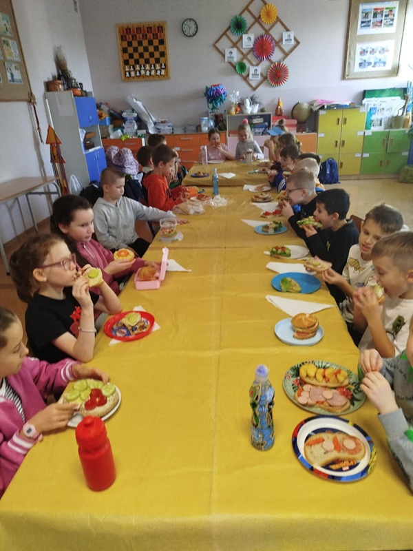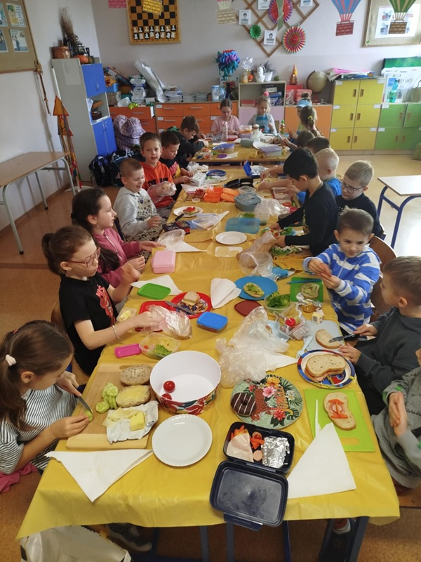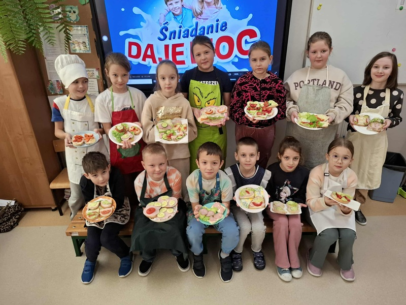 W dniu 14 listopada 2025 r. w naszej szkole odbyła się Ogólnopolska Akcja „Śniadanie Daje Moc”, w której uczestniczyły klasy I–III. Celem wydarzenia było promowanie zdrowego odżywiania oraz uświadomienie dzieciom, jak ważne jest zjedzenie wartościowego posiłku przed rozpoczęciem nauki. Podczas zajęć uczniowie samodzielnie przygotowywali zdrowe kanapki, korzystając z różnorodnych świeżych produktów.