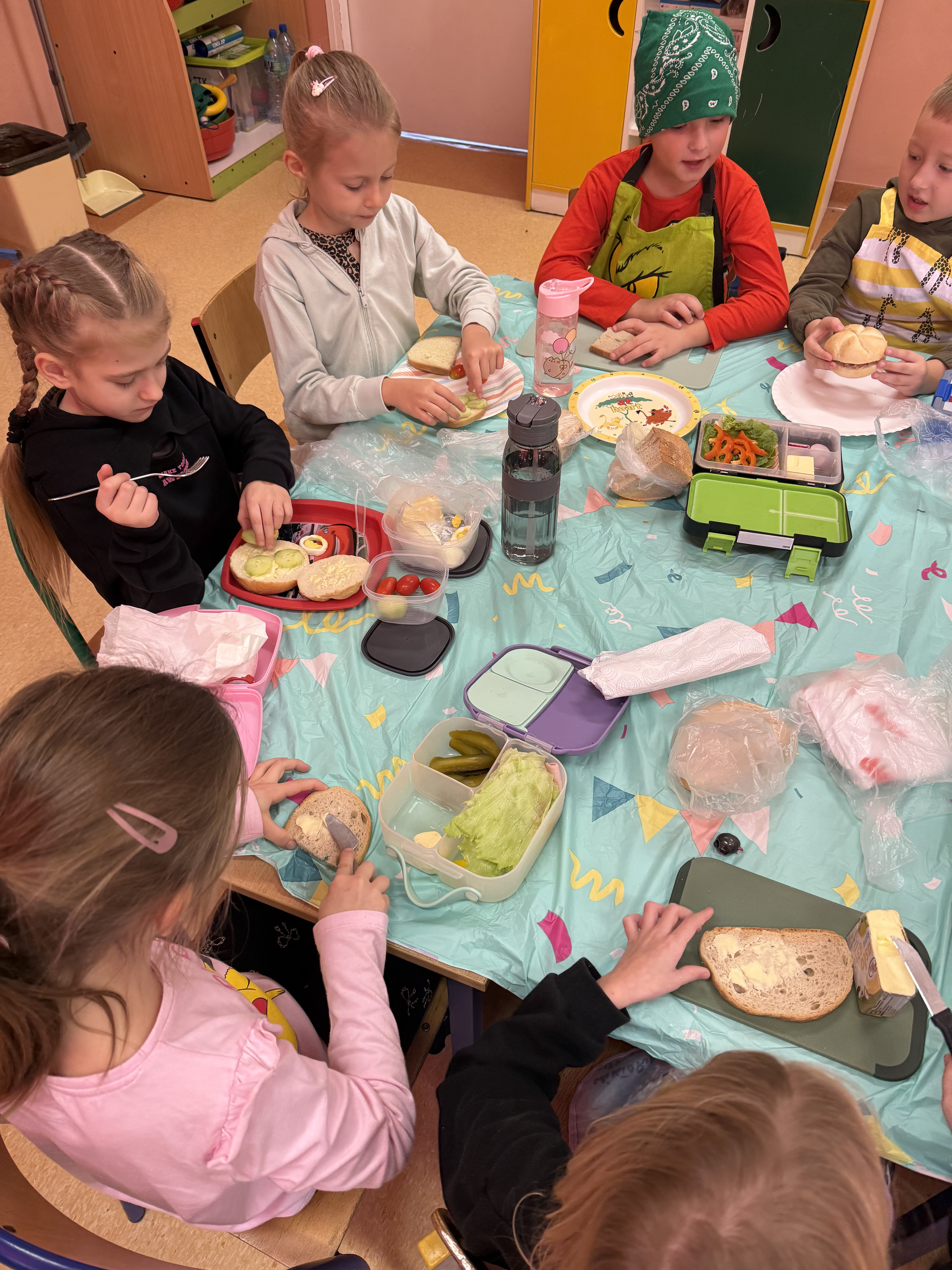 Następnie wszyscy wspólnie zasiedli do stołu, aby zjeść przygotowane przez siebie śniadanie. Wydarzenie przebiegło w miłej atmosferze i było doskonałą okazją do rozmów o zasadach zdrowego żywienia.