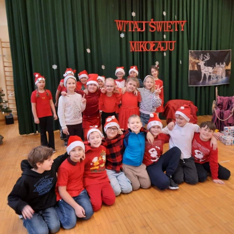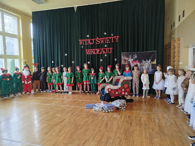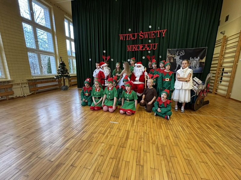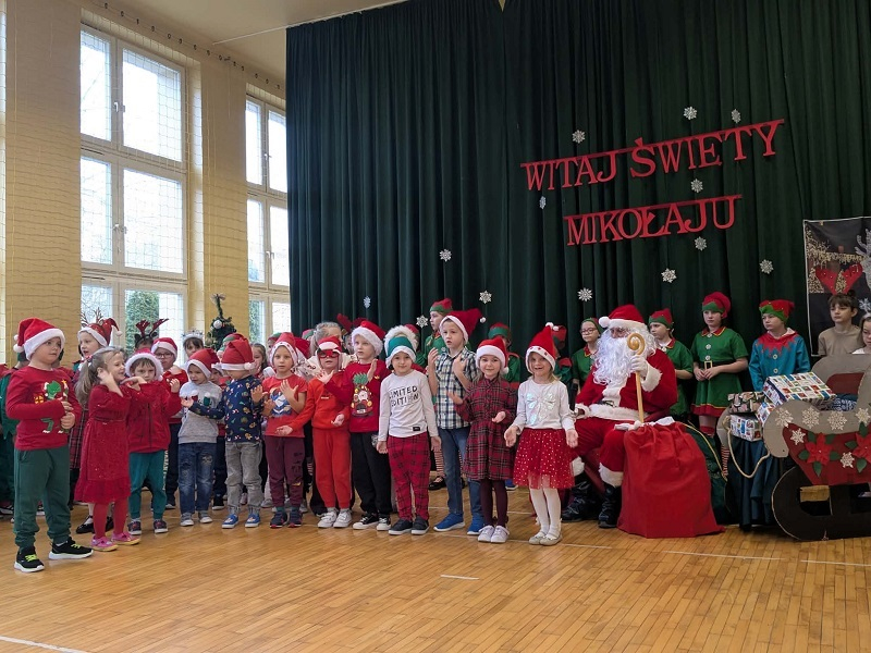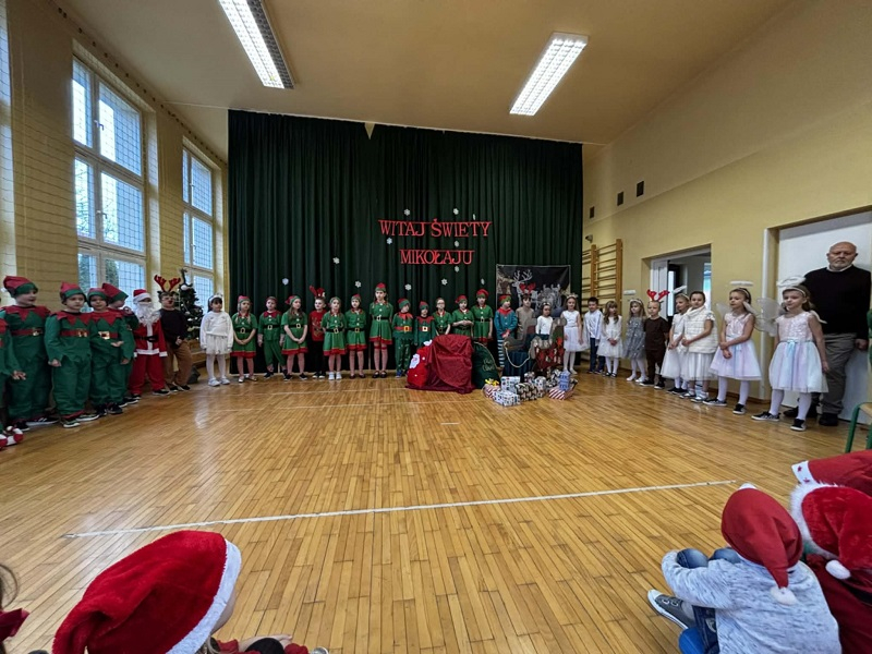W naszej szkole 5 grudnia na sali gimnastycznej odbyło się wyjątkowe spotkanie klas 0-III ze Świętym Mikołajem. Uczniowie, nauczyciele oraz zaproszeni goście zgromadzili się, aby wspólnie rozpocząć świąteczny czas i wziąć udział w przygotowanym na tę okazję przedstawieniu.