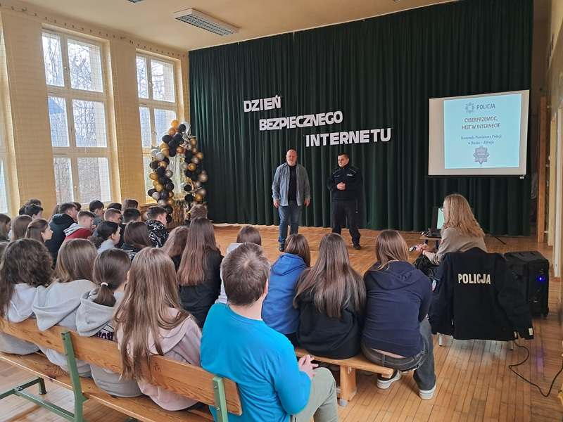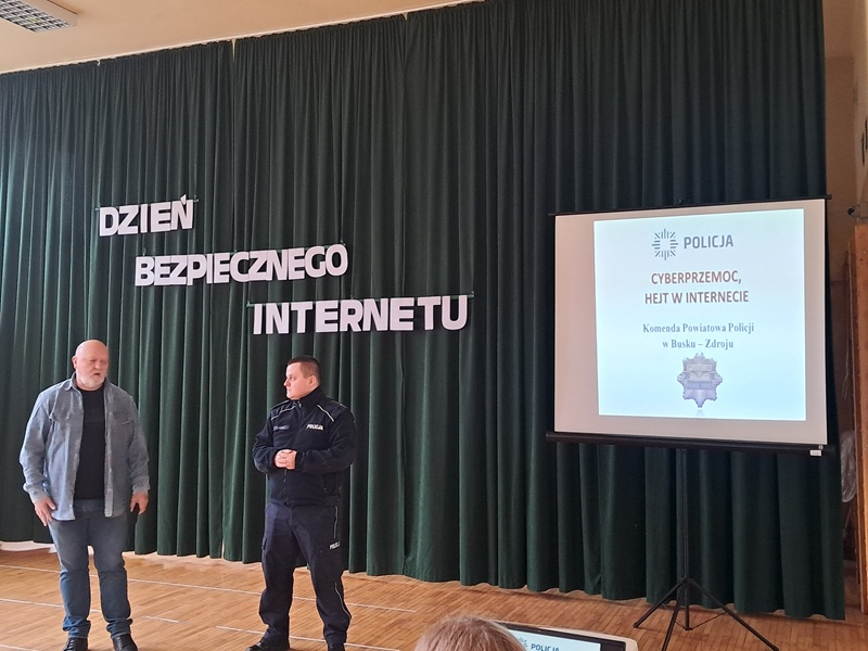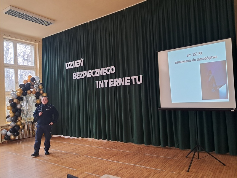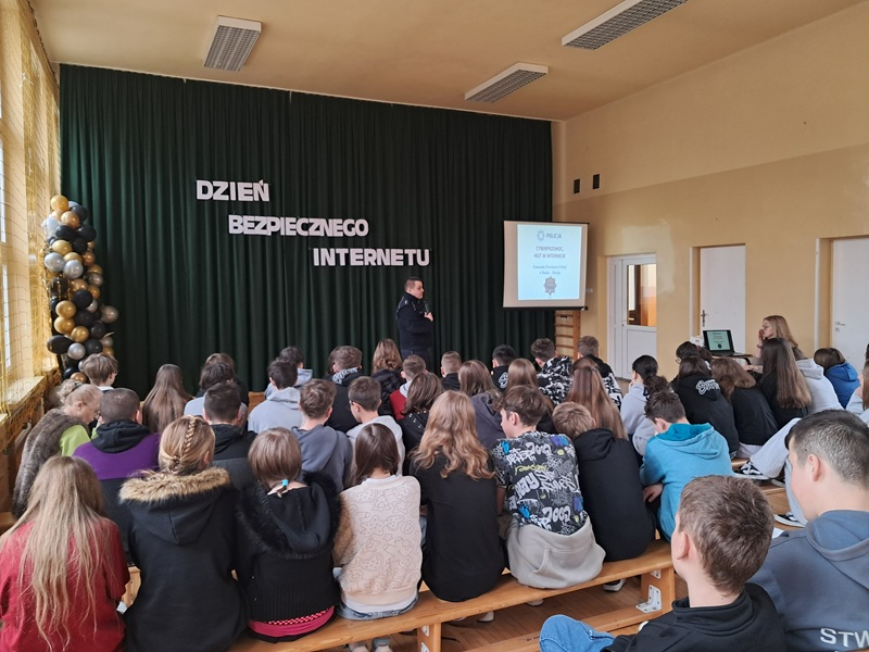 W dniu 10 lutego uczniowie klas 7 i 8 wzięli udział w spotkaniu z przedstawicielem Policji i wysłuchali prelekcji na temat cyberprzemocy i hejtu i skutków prawnych tych zachowań.