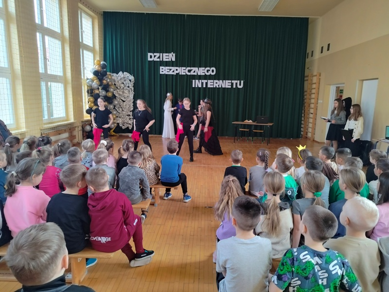 11 lutego uczniowie klas 0-6 obejrzeli przedstawienie pt. „Królowa Śniegu w sieci”, przygotowane przez uczniów klasy 6b i 4a. Ta współczesna opowieść inspirowana baśnią Andersena, w przystępny i poruszający sposób pokazała, jak łatwo zagubić się w świecie ekranów i jak ważna jest prawdziwa relacja, rozmowa oraz świadome korzystanie z Internetu. Na koniec spotkania uczniowie klas 4-6 rozwiązali quiz ze znajomości zasad bezpiecznego korzystania z zasobów sieci Internet.