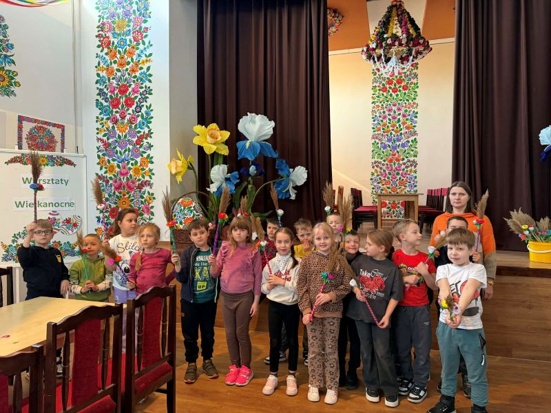 Wyjazd był niezwykle wartościowym doświadczeniem, które połączyło naukę z zabawą oraz pozwoliło dzieciom lepiej poznać polskie tradycje ludowe. Wszyscy wrócili do szkoły z uśmiechami na twarzach i pięknymi ręcznie wykonanymi palmami i pisankami.