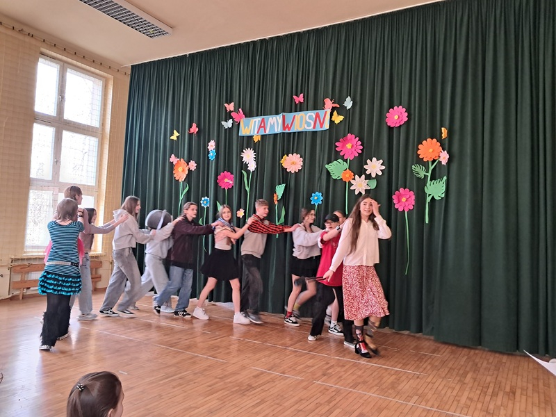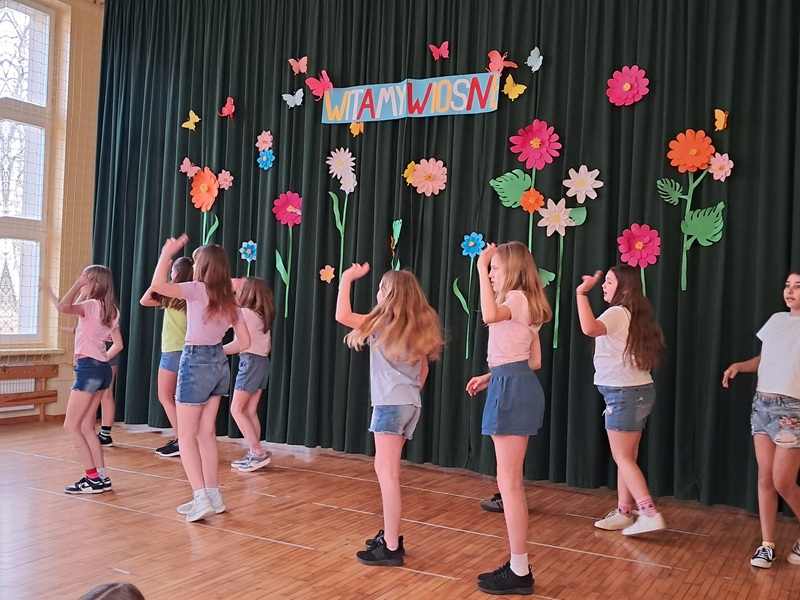 Na kolejnych lekcjach w sali gimnastycznej odbył się coroczny konkurs klas IV – VIII w którym każda klasa prezentowała piosenkę wiosenną. Wszystkie klasy prezentowały się wspaniale i barwnie chociaż każda klasa miała inny pomysł na piosenkę i jej artystyczne wykonanie. Jury złożone z przedstawicieli klas, pani psycholog i opiekuna SU wyłoniło zwycięzców – klasę IV B, która wręcz brawurowo wykonała piosenkę „W moim ogródecku”.