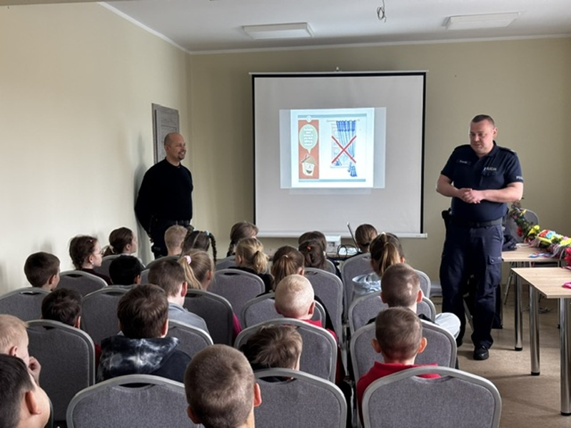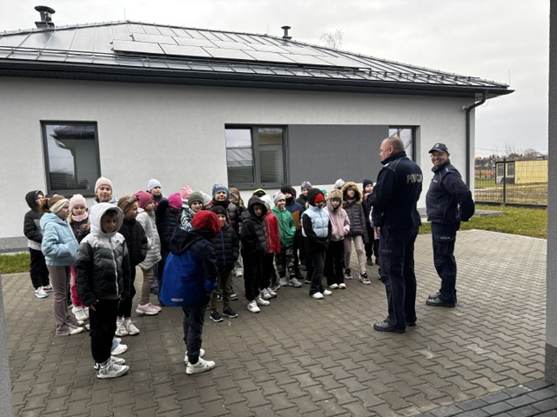W związku ze zbliżającymi się Świętami Wielkanocnymi uczniowie uczestniczyli także w prelekcji poświęconej tradycjom świątecznym. Dowiedzieli się, jakie zwyczaje towarzyszą Wielkanocy oraz jakie znaczenie mają poszczególne symbole. Następnie wzięły udział w warsztatach plastycznych, podczas których samodzielnie ozdabiały koszyczki wielkanocne. Była to nie tylko świetna zabawa, ale także okazja do rozwijania kreatywności i zdolności manualnych. Kolejnym ważnym punktem wycieczki była wizyta na posterunku policji w Wiślicy. Uczniowie wysłuchali bardzo wartościowej prelekcji dotyczącej szeroko pojętego bezpieczeństwa – zarówno w życiu codziennym, jak i w internecie. Policjanci zwrócili uwagę na problem hejtu oraz uświadomili dzieciom, że w sieci nie jesteśmy anonimowi. Przypomnieli również zasady właściwego zachowania w różnych sytuacjach. Dużym zainteresowaniem cieszyła się część praktyczna wizyty – uczniowie mieli możliwość zobaczenia, jak wygląda codzienna praca policjanta. Mogli przymierzyć elementy wyposażenia, usiąść w radiowozie oraz z bliska przyjrzeć się policyjnym pojazdom. To doświadczenie na długo pozostanie w ich pamięci. Wycieczka do Wiślicy była nie tylko ciekawą lekcją historii i tradycji, ale także ważnym elementem wychowawczym. Uczniowie doskonalili umiejętności właściwego zachowania w miejscach publicznych i historycznych, rozwijali kompetencje społeczne oraz zdobywali wiedzę na temat bezpieczeństwa. To był dzień pełen wrażeń, który z pewnością na długo pozostanie w pamięci wszystkich uczestników.