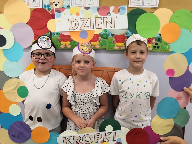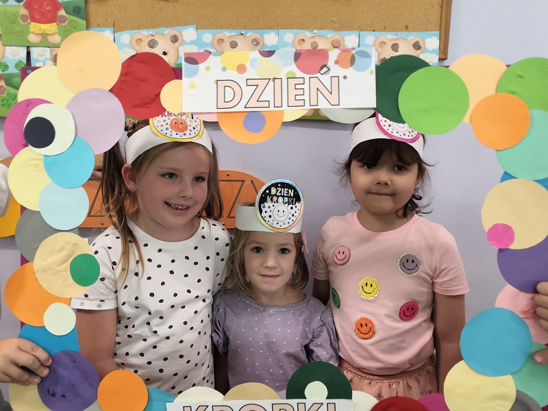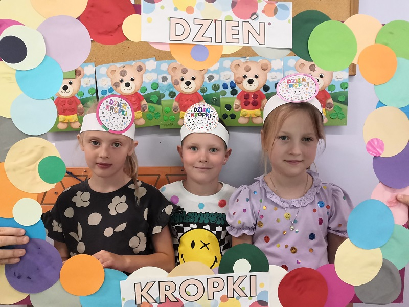 15 września nasze przedszkolaki obchodziły Międzynarodowy Dzień Kropki. Dzień Kropki to święto, które stwarza okazję do budowania pewności siebie, odkrywania talentów i pobudzania wyobraźni dzieci, młodzieży i dorosłych. Nasze Przedszkolaki tego dnia przyszły ubrane w grochy, kropki i groszki. Świętowanie rozpoczęliśmy od wysłuchały opowiadania, jak to zwyczajna kropka zmieniła świat małej dziewczynki o imieniu Vashti. Historia ta uświadomiła przedszkolakom, że każdy z nas ma jakieś ukryte zdolności, TALENT.