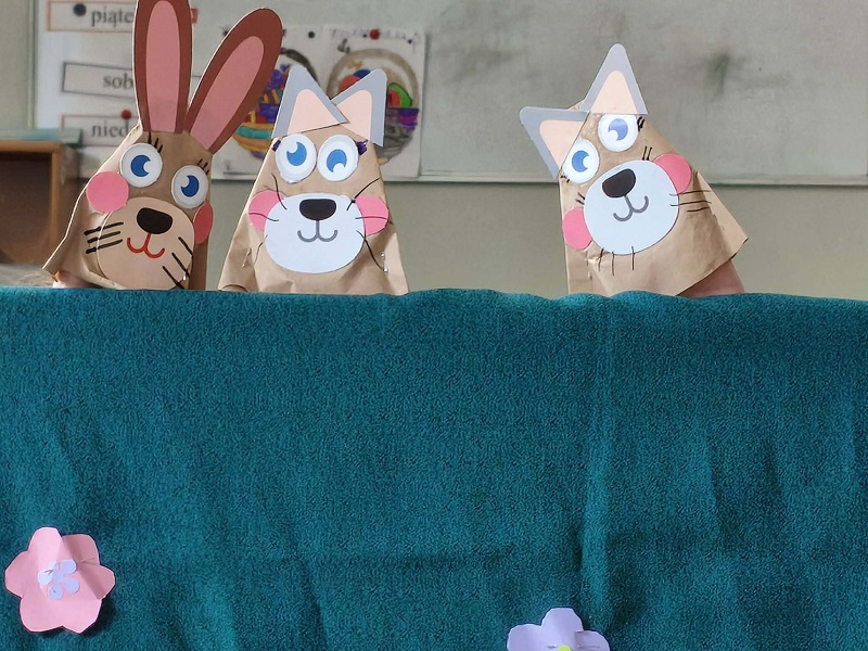 Podczas spotkania uczniowie mieli okazję poznać różne rodzaje teatru. Dowiedzieli się, czym różni się teatr lalek od teatru cieni, a także poznali tajniki teatru pantomimy i tradycyjnego teatru scenicznego. Dzieci z dużym zainteresowaniem słuchały opowieści o pracy aktorów oraz o tym, jak powstają przedstawienia teatralne – od pomysłu aż po występ na scenie.