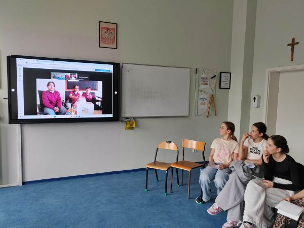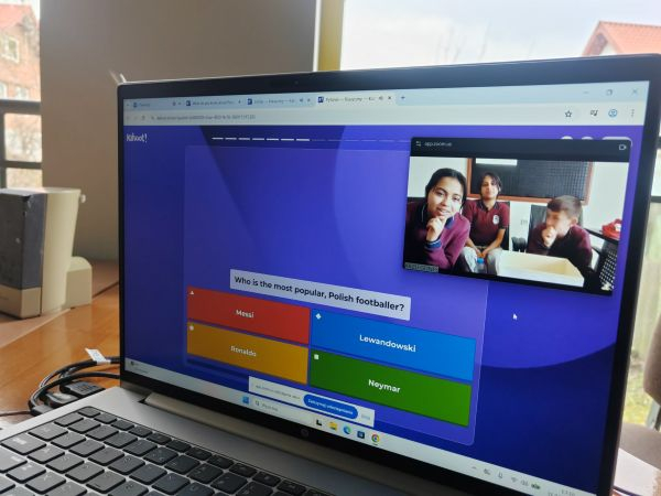 Ważnym elementem spotkania było również przedstawienie wybranych aspektów kultury obu krajów. Uczniowie dzielili się ciekawostkami, tradycjami oraz charakterystycznymi elementami życia w Polsce i Turcji. Na zakończenie spotkania uczestnicy wzięli udział w interaktywnym quizie Kahoot, dotyczącym Polski. Była to nie tylko świetna zabawa, ale także okazja do sprawdzenia wiedzy i utrwalenia poznanych informacji. Wideokonferencja przebiegła w bardzo miłej atmosferze i dostarczyła uczniom wielu pozytywnych emocji. Takie spotkania są cennym doświadczeniem, które rozwija umiejętności językowe, społeczne oraz otwartość na inne kultury.