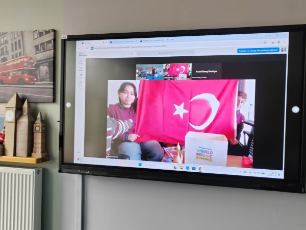 Tuż przed świętami, uczniowie klasy 5a i 5b wzięli udział w międzynarodowej wideokonferencji w ramach projektu eTwinning „World Mosaic”. Spotkanie odbyło się we współpracy ze szkołą z Turcji i było doskonałą okazją do wymiany doświadczeń oraz bliższego poznania rówieśników z innego kraju. Podczas wideokonferencji uczniowie mieli możliwość zaprezentowania siebie – opowiadali o swoich zainteresowaniach, codziennym życiu oraz szkole.