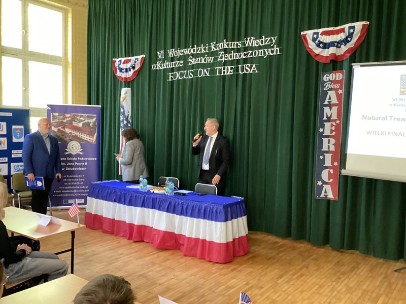 7 maja 2025 r. w siedzibie Organizatora Konkursu, tj. w Publicznej Szkole Podstawowej im. Jana Pawła II w Zbludowicach, o tytuł laureata walczyło 75 uczniów klas szóstych, siódmych i ósmych reprezentujących szkoły podstawowe z całego województwa świętokrzyskiego. Finaliści zostali wyselekcjonowani w drodze dwuetapowych eliminacji spośród 250 zgłoszonych do udziału w Konkursie uczniów. Składająca się z pracowników Konsulatu Komisja Konkursowa sprawdziła wiedzę uczniów z wybranych, określonych Regulaminem Konkursu, numerów elektronicznego czasopisma Zoom in on America, dostępnego na stronie internetowej Konsulatu Generalnego Stanów Zjednoczonych pod adresem: Zoom in on America - U.S. Embassy Consulate in Poland. Publikacja Zoom in on America stanowiła materiał źródłowy o kulturze Stanów Zjednoczonych, na podstawie którego uczniowie przygotowywali się do udziału w poszczególnych etapach Konkursu przez cztery ostatnie miesiące. W tym czasie język angielski stał się dla nich narzędziem poznania, a więc już nie celem samym w sobie, a środkiem do osiągania wyższych celów edukacyjnych. Niewątpliwie więc Konkurs FOCUS ON THE USA umożliwia jednoczesne kształtowanie kompetencji językowych i kulturowych w sposób szerszy niż umożliwia to podstawa programowa. Ponadto Konkurs został wpisany przez Świętokrzyskiego Kuratora Oświaty do wykazu zawodów wiedzy, które mogą być wymienione na świadectwie ukończenia szkoły podstawowej i uwzględniane w postępowaniu rekrutacyjnym do szkół średnich na rok szkolny 2025/2026. Rangę przedsięwzięcia podkreśliły przyznane Konkursowi patronaty honorowe - Wojewody Świętokrzyskiego, Świętokrzyskiego Kuratora Oświaty, Świętokrzyskiego Centrum Doskonalenia Nauczycieli, Starosty Buskiego oraz Burmistrza Miasta i Gminy Busko-Zdrój. Regionalny busko.com.pl.