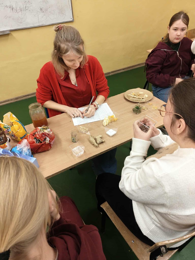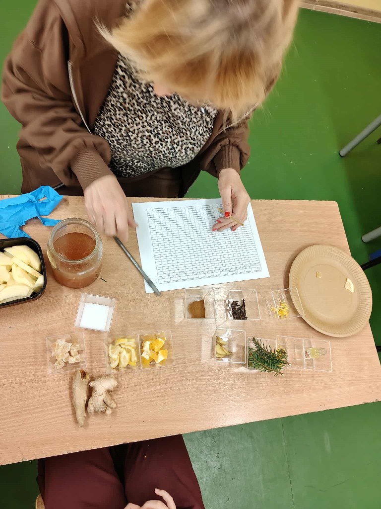 W grudniu zajęcia nabrały wyjątkowo świątecznego charakteru. Podczas spotkań sensorycznych dzieci doświadczały świata zmysłami, poznając charakterystyczne zapachy i smaki związane z Bożym Narodzeniem. W bezpiecznej i radosnej atmosferze uczniowie degustowali wybrane produkty, rozpoznawali ich smak, zapach i fakturę, a także dzielili się swoimi wrażeniami. Zajęcia rozwijały umiejętność opisywania doznań, uważności oraz otwartości na nowe doświadczenia. Była to doskonała okazja do rozmów o tradycjach świątecznych i budowania pozytywnych relacji w grupie.